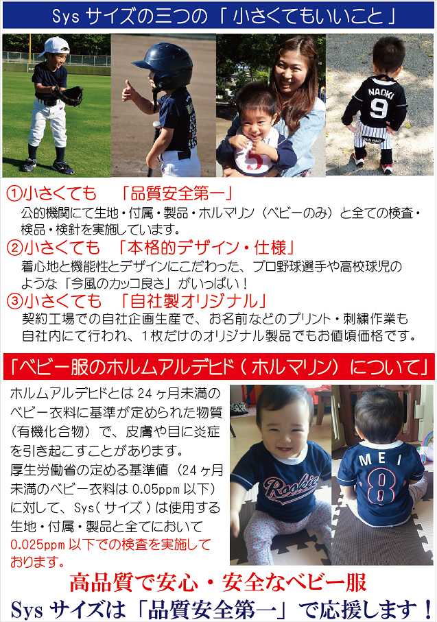 小さい野球ユニフォーム