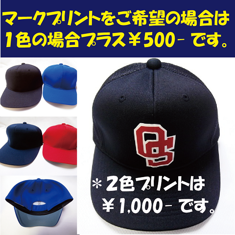 商品説明: 帽子本体は高級感のあるポリエステル地使用し、形状保持性と速乾性にも優れています。 後ろ部分でサイズ調節ができ52cm~56cmのサイズです。マーク入れできます!