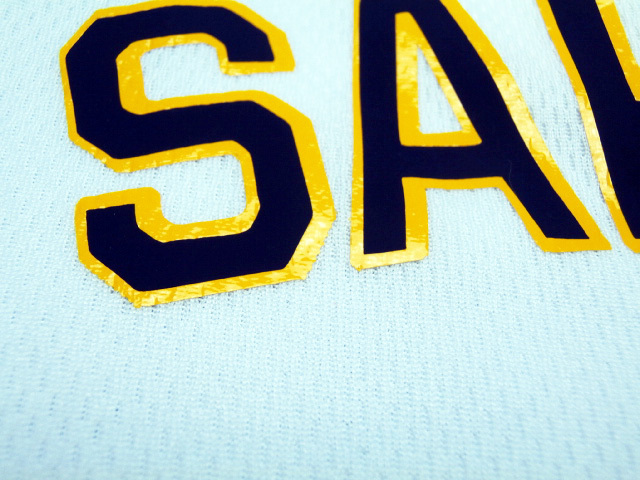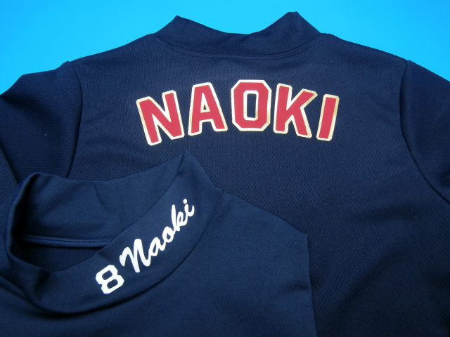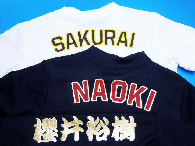 左胸にワンポイントネーム、もしくはチーム名を入れて、そして背中の上部には大きく2色のネームを入れればまさに気分はプロ野球選手!