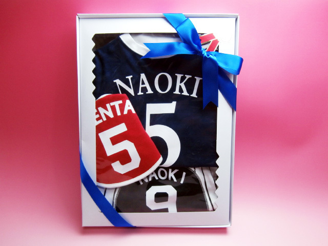 *単品総額で\760-OFFとなります。<br><br>*「ちっちゃいベビーギフト用3点セット」のご注文方法 <br><br>①サイズとリボンの色と数量をお選びいただきご注文をお願いします。<br><br>②各アイテムごと(Tシャツ、パンツ、スタイ、)のお名前・背番号などの色・フォント種類に関しましては、ご注文後に当店よりお申込書をメール送信いたしますので、そちらのお申込書にご希望内容をご記載の上、FAXもしくはメールにてご返信ください。<br>*当店のメールアドレスは当ホームページ中央部の最下段にございます<br><br>③またご記入の際、プリントの色・フォント種類については、各アイテムの商品説明ページをご参照くださいませ。*当店のメールアドレスは当ホームページ中央部の最下段にございます。