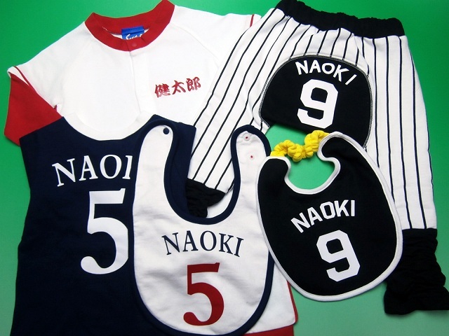お誕生日やお祝いごとなどへのギフト用に、すべてのアイテムにネームの入ったSys(サイズ)のオリジナルベビー服のセットでお子様の野球人生の第一歩を一緒に応援させていただきます!